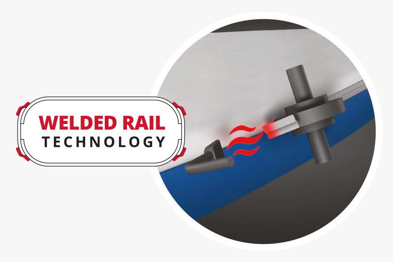 Seit 2019 produziert Starboard alle Inflatables mit geschweißten Rails (Kanten). Das bedeutet, die Ober,- und Unterseite wird durch eine neue Technologie mit den Rails zu einer Einheit verschweißt. Ohne Kleber, denn der hält nicht ewig. Über die Zeit undicht werdende Kanten gehören damit der Vergangenheit an.